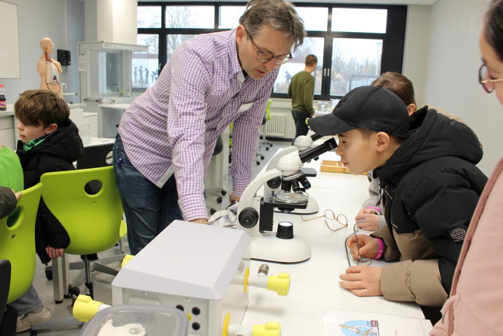 Um allen Gästen ausreichend Raum zu geben, erfolgte die zentrale Begrüßung durch die Schulleiterin Carmen Boomgaarden in der Mensa. Im Anschluss begaben sich die Kinder – begleitet von engagierten Schülerinnen und Schülern des zehnten Jahrgangs – auf eine abwechslungsreiche Stationen-Rallye durch das Schulgebäude. Dabei konnten sie die verschiedenen Unterrichtsfächer auf praktische und anschauliche Weise kennenlernen.