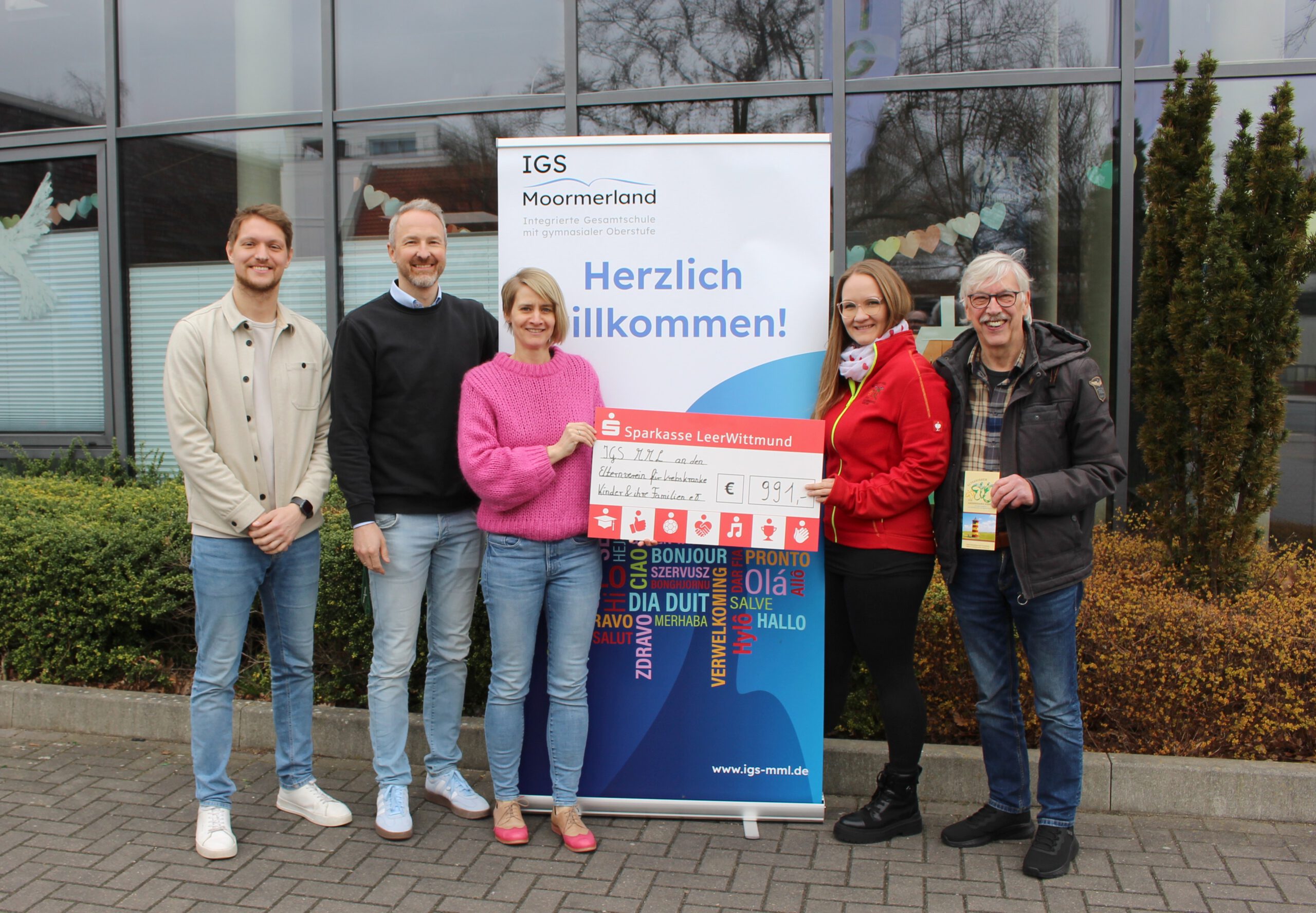 Die IGS Moormerland hat 991 Euro an den Elternverein für krebskranke Kinder und ihre Familien in Ostfriesland und Umgebung e.V. gespendet. Der Betrag kam beim Lichterfest der Schule im vergangenen November zusammen und wurde nun an den Verein übergeben.